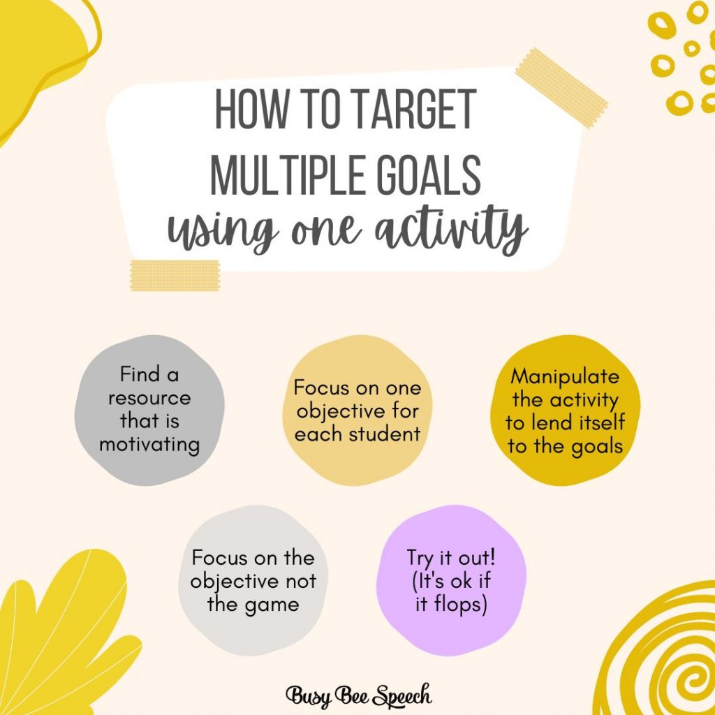 That’s what we’re chatting about today. Here are my best tips for how to target multiple goals using one activity in group speech therapy.