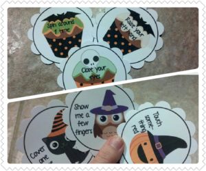 Cute right?! I’m using them as containers to go with my latest TPT game: Halloween Following Directions/Reinforcement. 🙂 I love it when I can do multiple things with one game or activity. This game lets kids use sweet little cupcakes, cats, owls, and pumpkins to practice following directions. I am obsessed with this clipart!